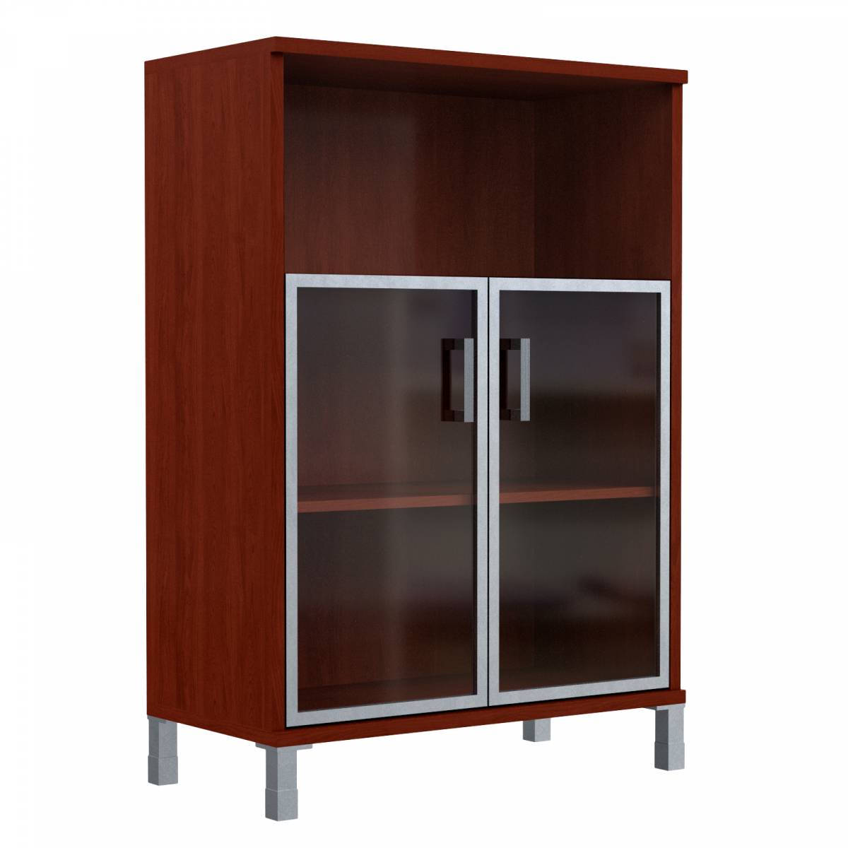 Шкаф низкий со стеклянными дверьми в AL-рамке B 410.4 Бургунди 900х450х920